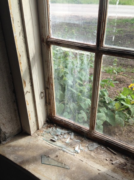 Kitt, glas, damm och skräp nedfallet mellan inre och yttre bågar