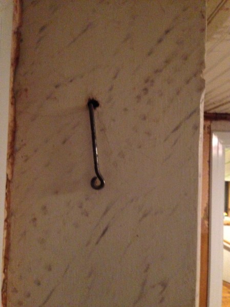 Spjället i den dolda spismuren inböjt för att kunna spikas för