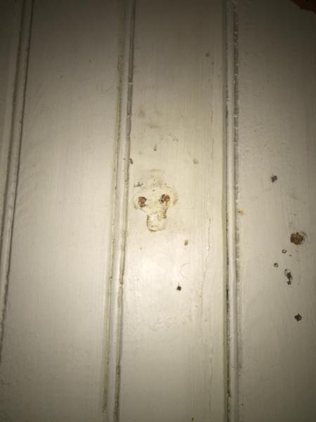 Bakom väggskivan fanns spår efter krok i väggen från en gång för längesedan.