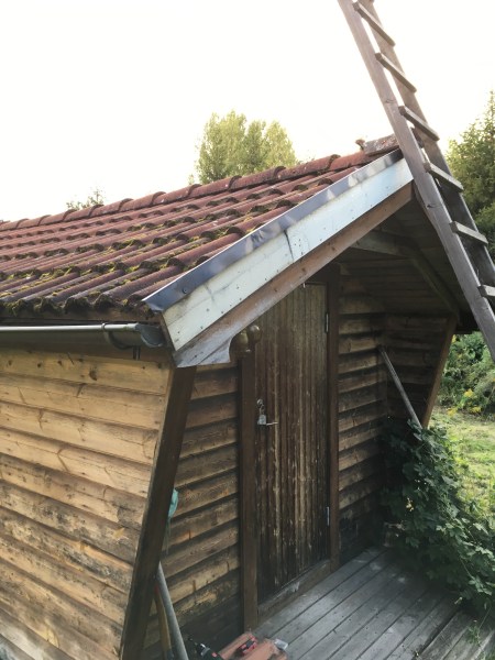 Algbevuxen en gång lackad panel och vindskivor i dåligt skick.