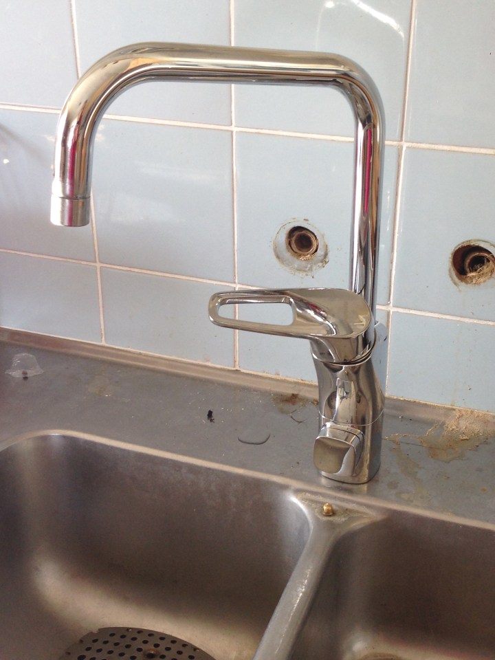 Mamma och jag kunde ganska tidigt konstatera att det var läge för en ny bänkskiva mellan diskbänk och spis. Den som lagts dit under 80-talet i laminat var sliten och ful. Jag vet inte riktigt hur min hjärna jobbade då men på något vis bar den minne av nån stor skiva jag sett flera gånger på gården. Så jag började leta. Jag gick igenom några bodar, klättrade upp på några skullar och faktiskt efter knappt tio minuter kunde jag i triumf bära fram en stor tillsynes oanvänd stavlimmad bänkskiva från stallskulln. Det visade sig att den antagligen var gjord för just denna bänk då måtten stämde nästan perfekt. Den hade dock ett fult hack på ena sidan vilket antagligen ledde till att den hamnade på skullen istället. Men eftersom bänkytan nu krympt med några decimeter på grund av de båda nyinstallerade spisarna kunde snickaren såga bort det dåliga och lägga den på plats!